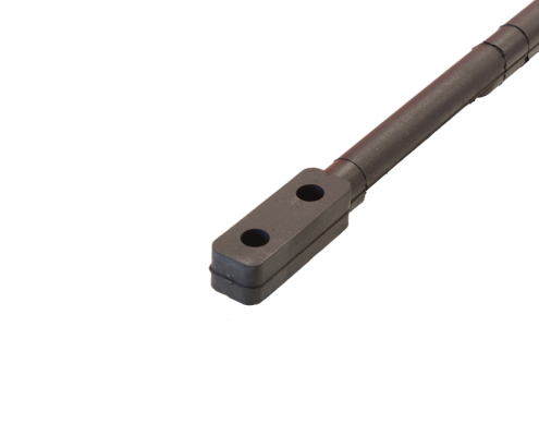 To protect the product from damage, we can vulcanize a soft rubber layer onto the rods. This rubber has a hardness of 30-35° shore. Because the rod is vulcanized over the total length, including the flattenings, this offers optimal protection. With these rods, the centre belt is attached with OGP. Because each rod must be vulcanized in a mold not every width is available.